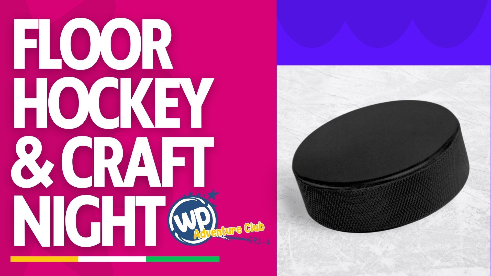 Join us for a night of playing floor hockey, and making crafts! Please bring a stick with a sock on the end.